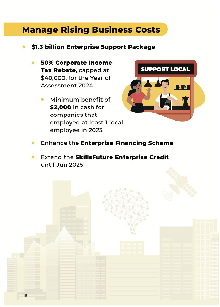 Traditionally, supporting measures for the coming financial year were announced in Singapore’s FY2024 Budget Statement delivered by Deputy Prime Minister and Minister for Finance, Mr Lawrence Wong, on 16 Feb 2024.